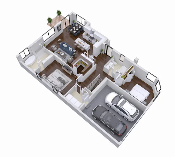 Transformez votre plan 2D en un plan 3D réaliste vue du dessus, avec tous les meubles, objets et détails inclus. Visualisez les volumes, les pièces et la circulation pour anticiper chaque détail et prendre des décisions éclairées avant le début des travaux.